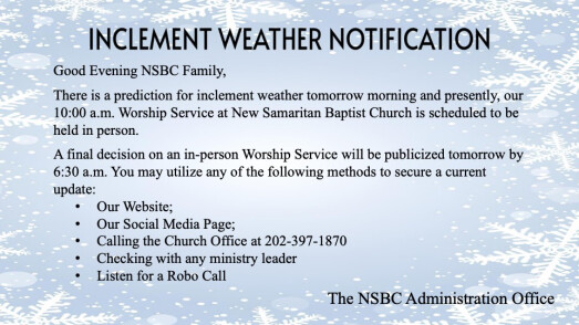New Samaritan’s Vision is alive in the hearts of the NSBC Disciples. We wholeheartedly believe and actively seek to demonstrate that we are a Church of Compassion, Conviction, and Connection!